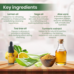 - Aloe Vera soothes and hydrates skin